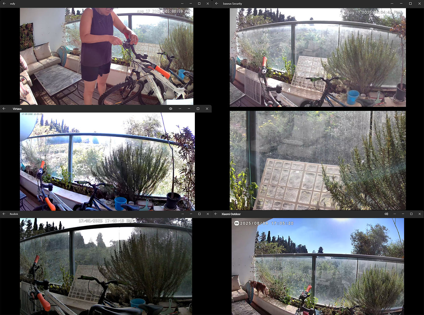 היות ומדובר במצלמות חוץ שצריכות להיות חשופות לשמש ישירה, בדקנו את הצהרת היצרן לגבי הטמפרטורה המקסימלית שבה המכשיר יכול לתפקד. המצלמות של ריאולינק ו-Virtavo מדורגות לעד 55 מעלות, המצלמות של Eufy ו-Baseus עד 50 מעלות. שיאומי לא פרסמה נתון רלוונטי.