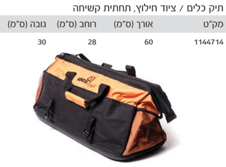 תיק "24 מקצועי תחתית קשיחה מבית ROHER מחיר 118 ₪ זוג מגני ברכים סיליקון מבית ROHER מחיר 59 ₪ במקום 79 ₪ אפוד זוהר צהוב 5 כיסים ROHER מחיר 100 ₪ קליבר דיגיטלי 150MM מבית ROHER מחיר 79 ₪ במקום 118 ₪ מראה טלסקופית מלבנית עם תאורה מבית ROHER מחיר 39 ₪ במקום 44 ₪ אולר רב תכליתי כולל נרתיק מבית ROHER מחיר 79 ₪ במקום 140 ₪