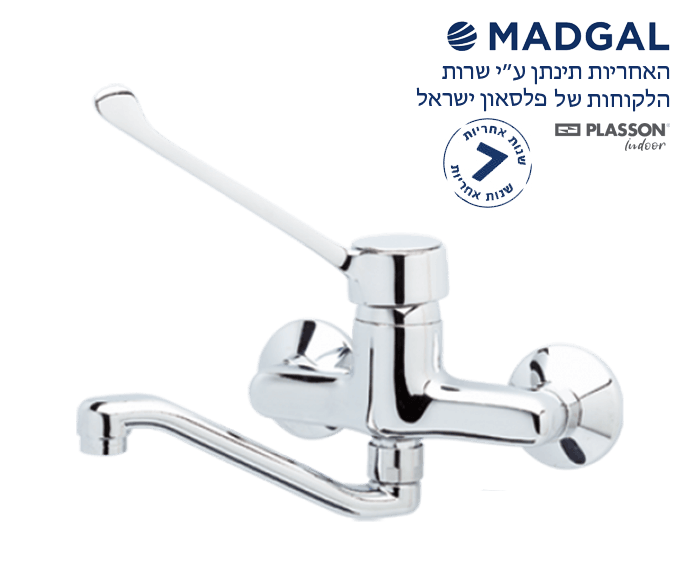 ברז נגישות מהקיר סוללה לכיור רחצה, פיה תחתונה קצרה, ידית מרפק, כרום ניקל, 70932, סדרת אופק, מדגל MADGAL