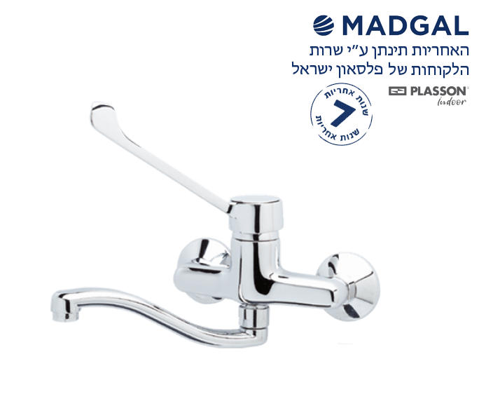 ברז נגישות מהקיר סוללה לכיור מטבח, פיה תחתונה ארוכה, ידית מרפק, כרום ניקל, 70934, סדרת אופק, מדגל MADGAL