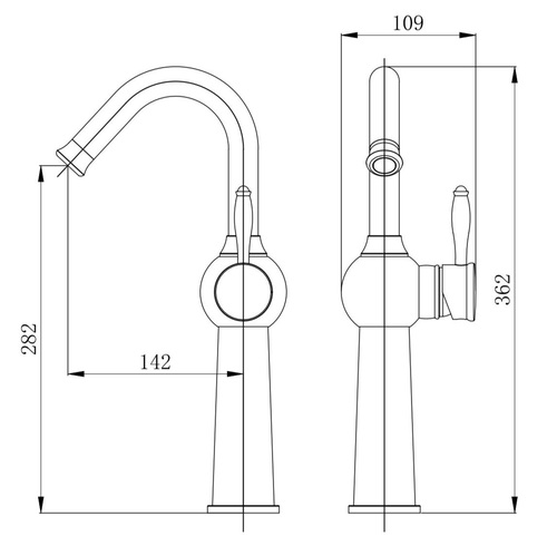 ברז גבוה לכיור מונח בעל פיה מסתובבת.