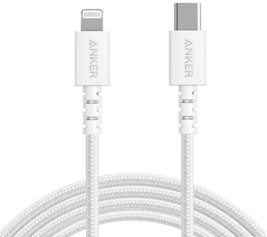 כבל איכותי להטענה והעברת נתונים של חברת ANKER עם חיבור USB-C ל- Lightning.