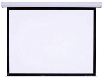 מסך הקרנה למקרן חשמלי כולל שלט אל-חוטי מרחוק, בגודל 2.44 מ’ ( 2.44×2.44) לתליה על קיר. JS . יחס 1:1 גוף מרובע עליה איטית .יחס 1:1 גוף מרובע עליה איטית , חיבור לקיר ולתקרה בצורת L.