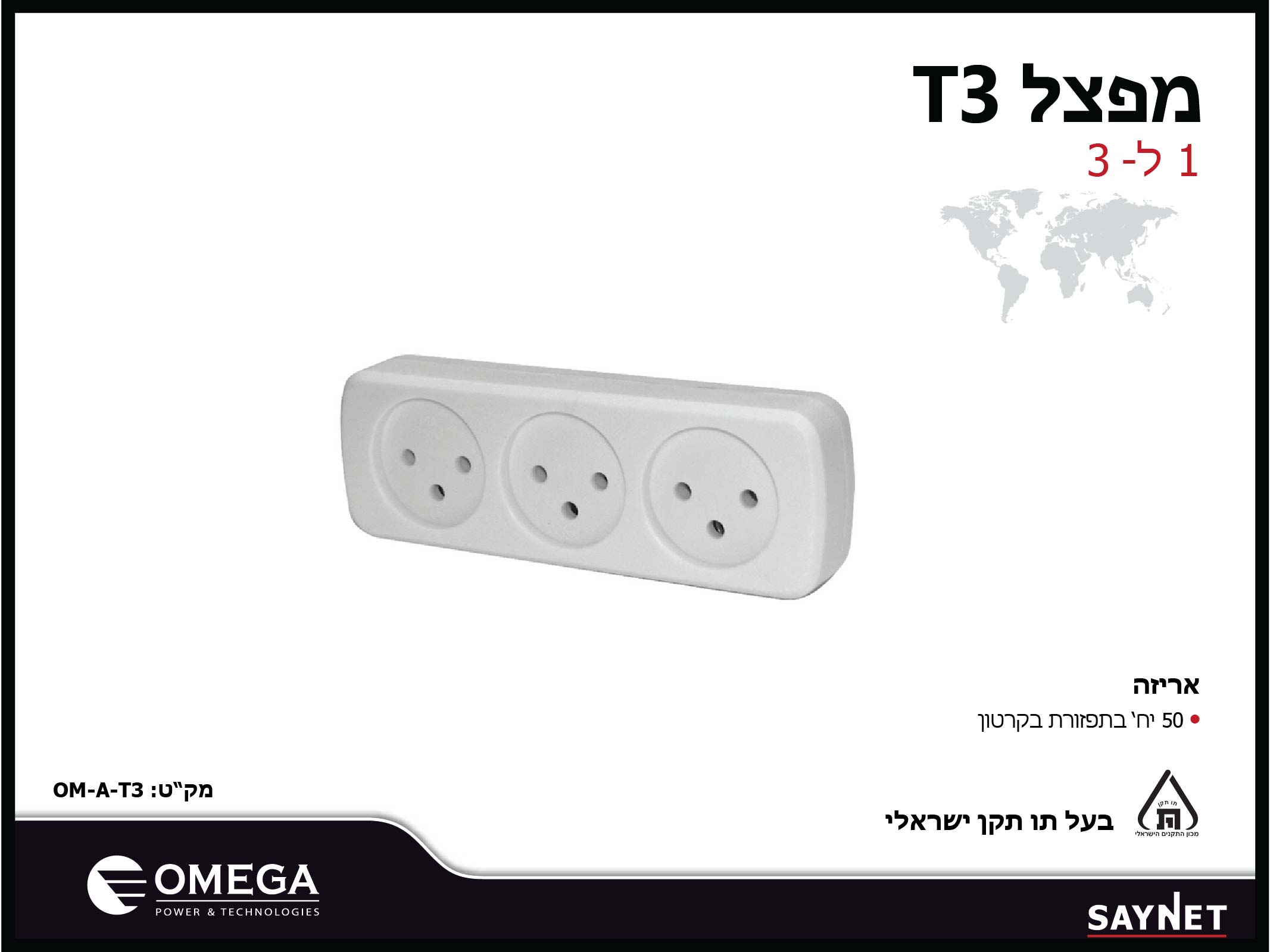 מפצל 3 שקעים OMEGA