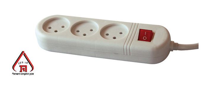 רב שקע \ מפצל - 3 שקעים + 1 מטר כבל + מפסק