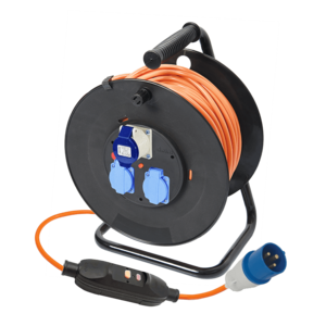 תוף כבל מאריך 50 מטר בידוד כפול עם פחת נייד ותקע סיקון CEE – פתרון מושלם לחשמל תעשייתי Deko