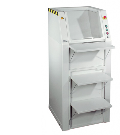 מגרסה 20451 DAHLE מגרסה מסיבית לטיפול גם בפסולת נייר מקופלת לגריסה כמותית של נייר אינה ניזוקה מסיכות ומהדקים פתח לשפיכת פסולת נייר ניתוק מנוע בהזנת יתר מפסק בטיחות למצב חירום כושר גריסה: 65 דף.פתח הזנה: 45 ס"מ.מידות גריסה: 3.9 מ"מ.הספק מנוע: 2.2 קילו וואט.תכולה: 190 ליטר.תפעול: ידני.מידות: ג. 1600 ר. 730 ע. 760 מ"מ