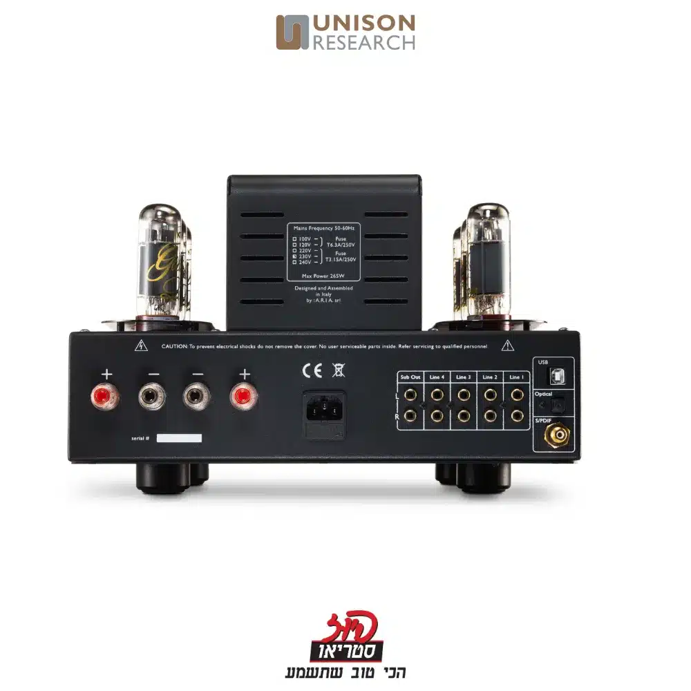 כמו כל מוצר של Unison Research, גם כאן מדובר במגבר שהורכב בעבודת יד. ממש כך. החל מהחוגה, דרך המעגלים הפנימיים ועד לגימור השחור האלגנטי – הכל מדויק, מוקפד ומייצר אמירה עיצובית ברורה. תוסיפו לזה את הקופסה הכבדה (25 ק"ג של איכות) ותקבלו מגבר שנראה כמו תכשיט – אבל נשמע כמו תותח.