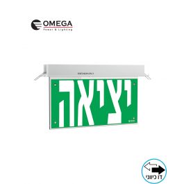 שלט יציאה דו תכליתי ודו כיווני, בעל ממיר אלקטרוני ממותג, בעל הגנת פיקוד ובקרה, לחצן טסט ולד טעינה, הגנה מפני טעינה ופריקת יתר של מארז הסוללות, להתקנה תה"ט, באישור ובהתאם לדרישות התקן הישראלי תקן 20 חלק 2.22 בהתאם לתקן הבנלאומי IEC60598 2.22 באישור מעבדת NEMKO – בדיקת CB scheme , מגיע עם שלוש מדבקות : “יציאה” , יציאה חץ ימינה, יציאה חץ שמאלה, תוצרת OMEGA.