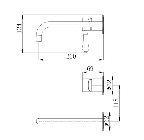 מערכת קיר לכיור רחצה בעל ידית חרס לבנה.
