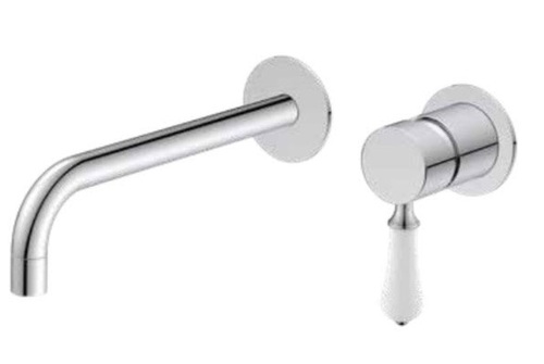 מערכת קיר לכיור רחצה בעל ידית חרס לבנה.