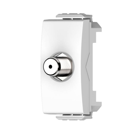 שקע טלוויזיה TV קואקס מסדרת הדגל ניסקו סוויץ’ עם מחבר נקבה F-TYPE בחזית. כולל מחבר M זכר לחיבור הכבל בקיר. החיבור לכבל נעשה בהברגה, ללא צורך בשימוש בכלי. ייעודי לחיבור טלוויזיה או ממיר לכבלים או לוויין.