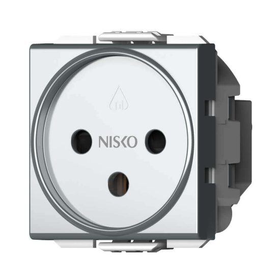 שקע כח יוקרתי מסדרת הדגל ניסקו סוויץ’ בעל תריס הגנת ילדים – מותאם לדרישות התקן הישראלי. מנגנון ייחודי שמתאים להידוק חוטים בקטרים שונים. שליפה מהחזית – אין צורך לפרק את המתאם מהקיר. מנגנון מכאני ייחודי לקיבוע השקע במתאם המעניק כח התנגדות שליפה.