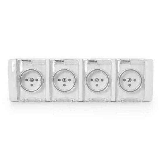 4 שקעי כח מסדרת מוגני המים החדשה SUPER N בייצור כחול לבן. דרגת אטימות הכי גבוהה בשוק IP65, חוזק מכאני IK08, פתיחת הקלפה ל-180° וחיווט מהיר ונוח. מיועד להתקנה במפעלים, מוסדות ובמבנים פרטיים.