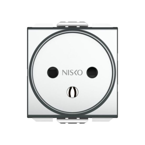 שקע כח יוקרתי מסדרת הדגל ניסקו סוויץ’ בעל תריס הגנת ילדים – מותאם לדרישות התקן הישראלי. מנגנון ייחודי שמתאים להידוק חוטים בקטרים שונים. שליפה מהחזית – אין צורך לפרק את המתאם מהקיר. מנגנון מכאני ייחודי לקיבוע השקע במתאם המעניק כח התנגדות שליפה.