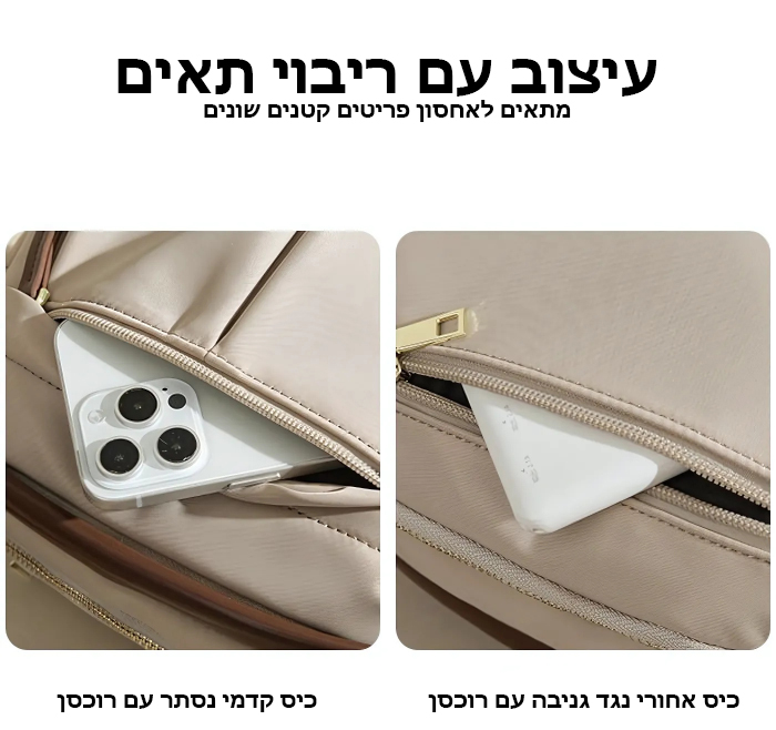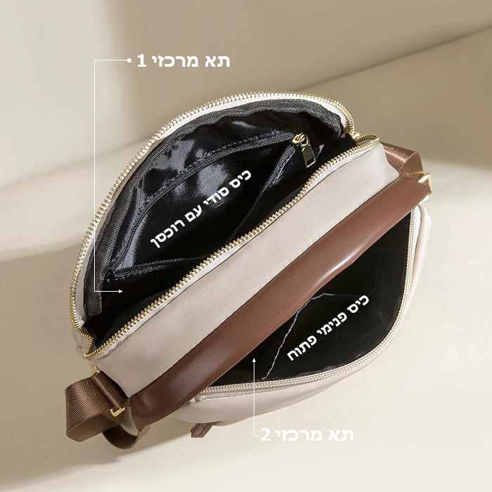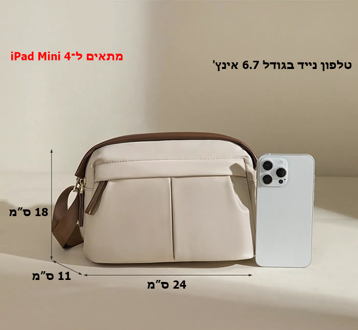 - ארגון חכם – תאים פנימיים לארגון מדויק של ארנק, טלפון, קוסמטיקה ואייפד.