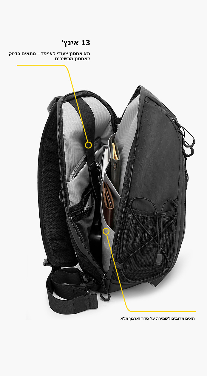 - שימוש חכם: רצועות תחתונות לנשיאת חצובה, מטרייה או מזרן יוגה