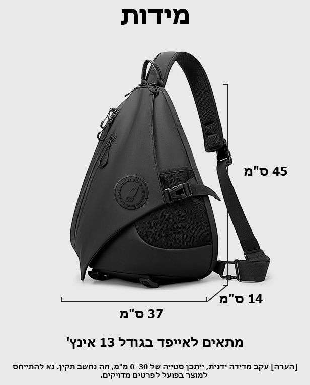 הכירו את Kaelion™ Max Bag מבית כאמל מאונטיין – תיק צד אלכסוני חכם בעיצוב עירוני מתקדם, שמתאים למטיילים, רוכבי אופניים ואנשי עיר פעילים. עשוי בד אוקספורד איכותי, עמיד במיוחד למים ולשחיקה, ומעוצב בגזרת משולש מרהיבה המשלבת סגנון, נוחות ונפח.