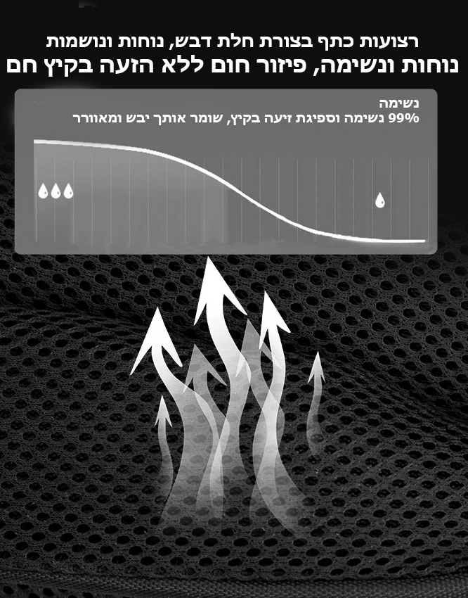 - רצועות נושמות לנוחות לאורך כל היום, גם במזג אוויר חם.