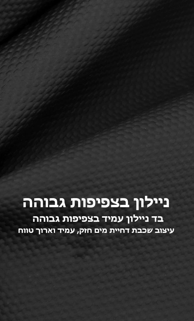 - חומר גלם: עשוי ניילון בצפיפות גבוהה עם שכבה דוחה מים לשימוש עמיד לאורך זמן.