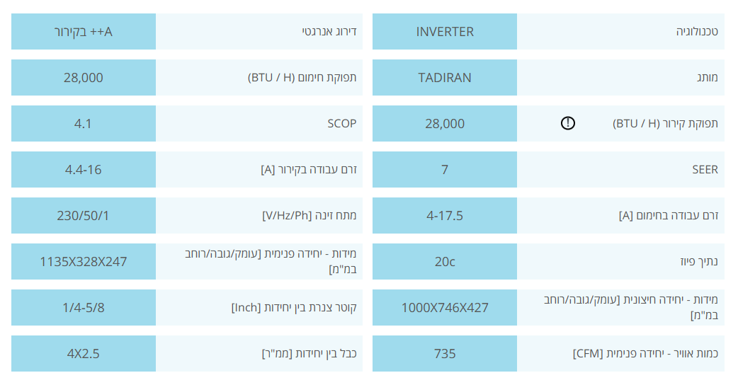 WiFi מובנה, שקט, פיזור אוויר ב-4 ממדים, מגע יבש מובנה, 7 מהירויות מפוח ושלל יתרונות נוספים.