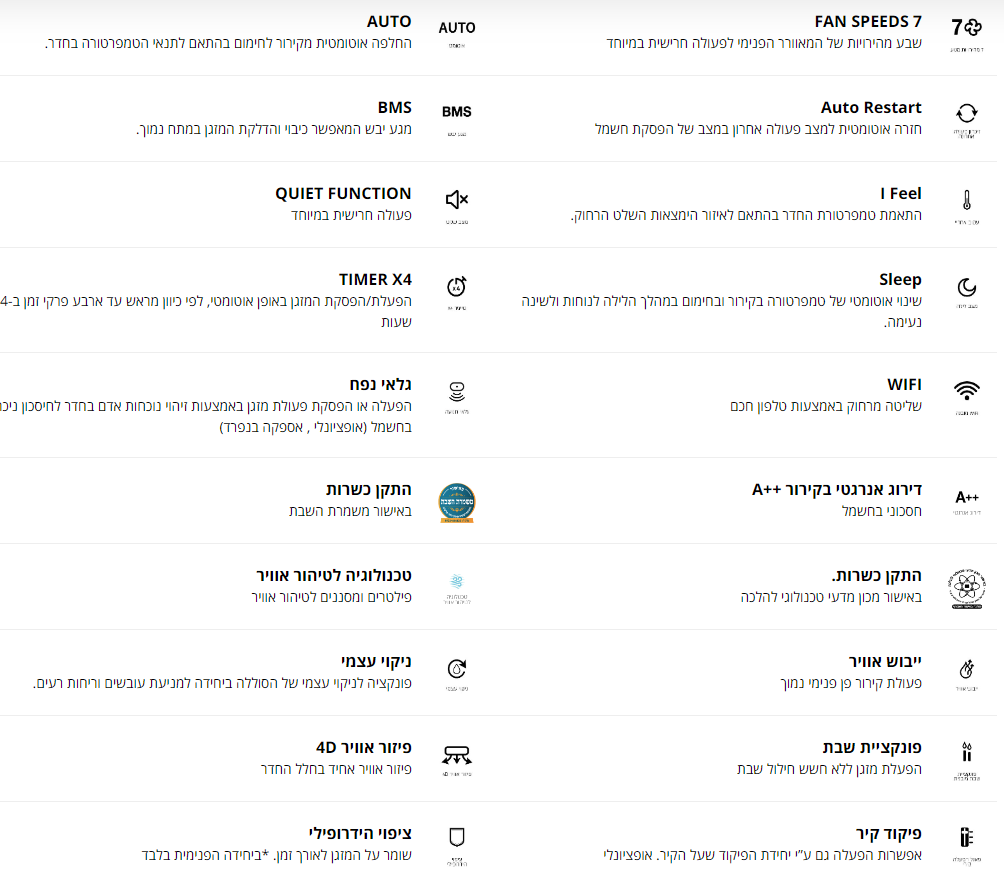 דירוג אנרגטי A++ לחסכון מרבי בחשמל