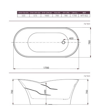 אמבטיה יוקרתית 170/78/70 ס"מ דגם MTI422