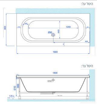 אמבטיה אקרילית 180/80 ס"מ.