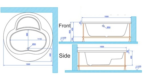 אמבטיה אקרילית 150 ס"מ.