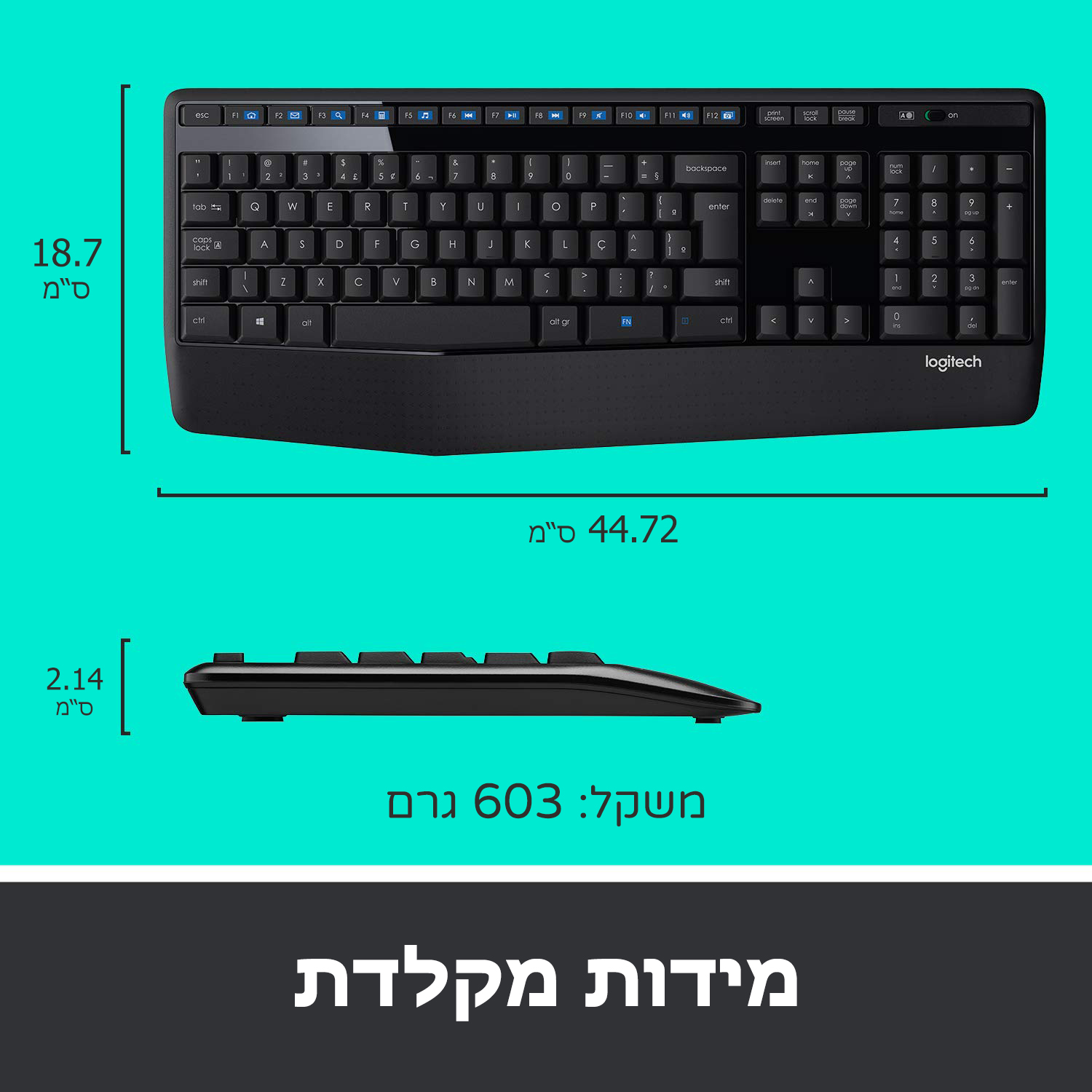 מקלדת ועכבר עברית-אנגלית Logitech Wireless Combo MK345