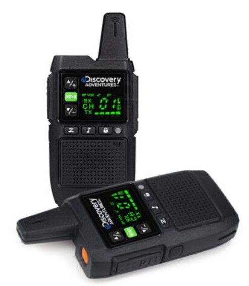 זוג מכשירי קשר איכותיים בעלי 8 ערוצי שידור שונים מבית דיסקברי. בדגם המשופר עם אנטנה ארוכה וטובה יותר בטווח עד 5 ק"מ . טעינה חשמלית