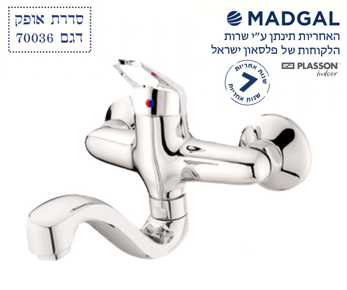 ברז מהקיר סוללה לכיור רחצה, פיה תחתונה גבוהה קצרה, כרום ניקל, 70036, סדרת אופק, מדגל MADGAL
