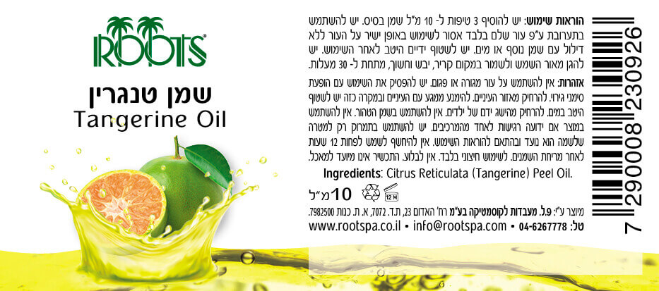 Tangerine oil / שמן אתרי טנג’רין 10 מ"ל מבית – רוטס / ROOTS