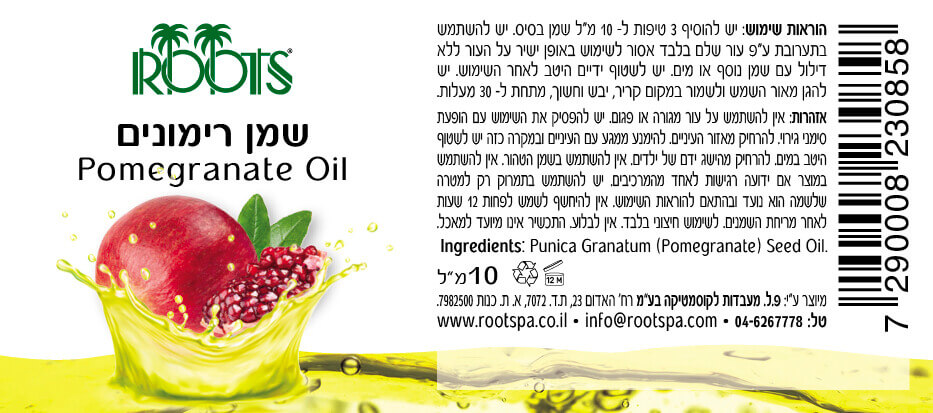 pomegranate oil / שמן אתרי רימונים 10 מ"ל מבית – רוטס / ROOTS