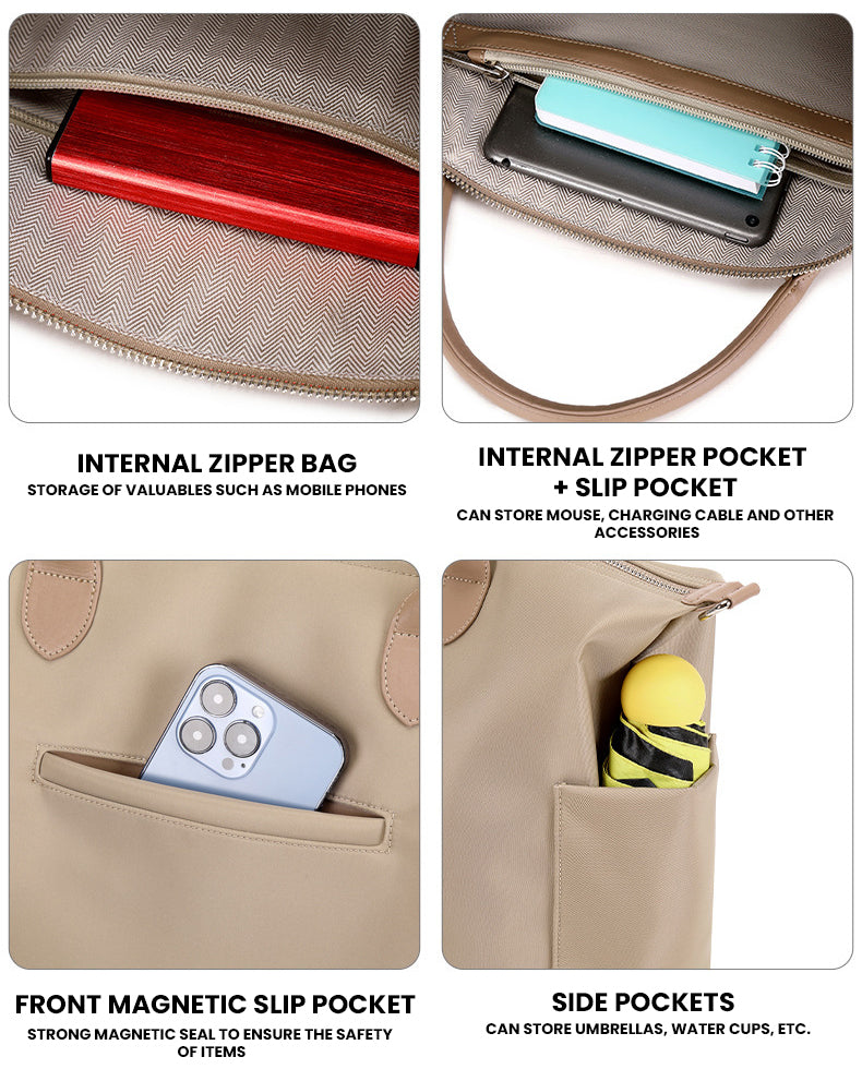תיק Solarix™ Platinum הוא לא רק תיק מחשב נייד; הוא החבר הטוב ביותר שלכם לכיבוש המשלחות היומיומיות שלכם. התא הראשי המרווח באופן מפתיע מתאים בנוחות ללפטופים עד 14 אינץ’, יחד עם המסמכים, החפצים החיוניים שלכם ביום יום ואפילו בקבוק מים. בין אם אתם חוקרים אזור חדש בעיר או ממהרים דרך יום העבודה שלכם, תיק Solarix™ Platinum מצייד אתכם לכל מה שהיום זורק עליכם, תוך שמירה על נגיעה של קסם רטרו על זמני.