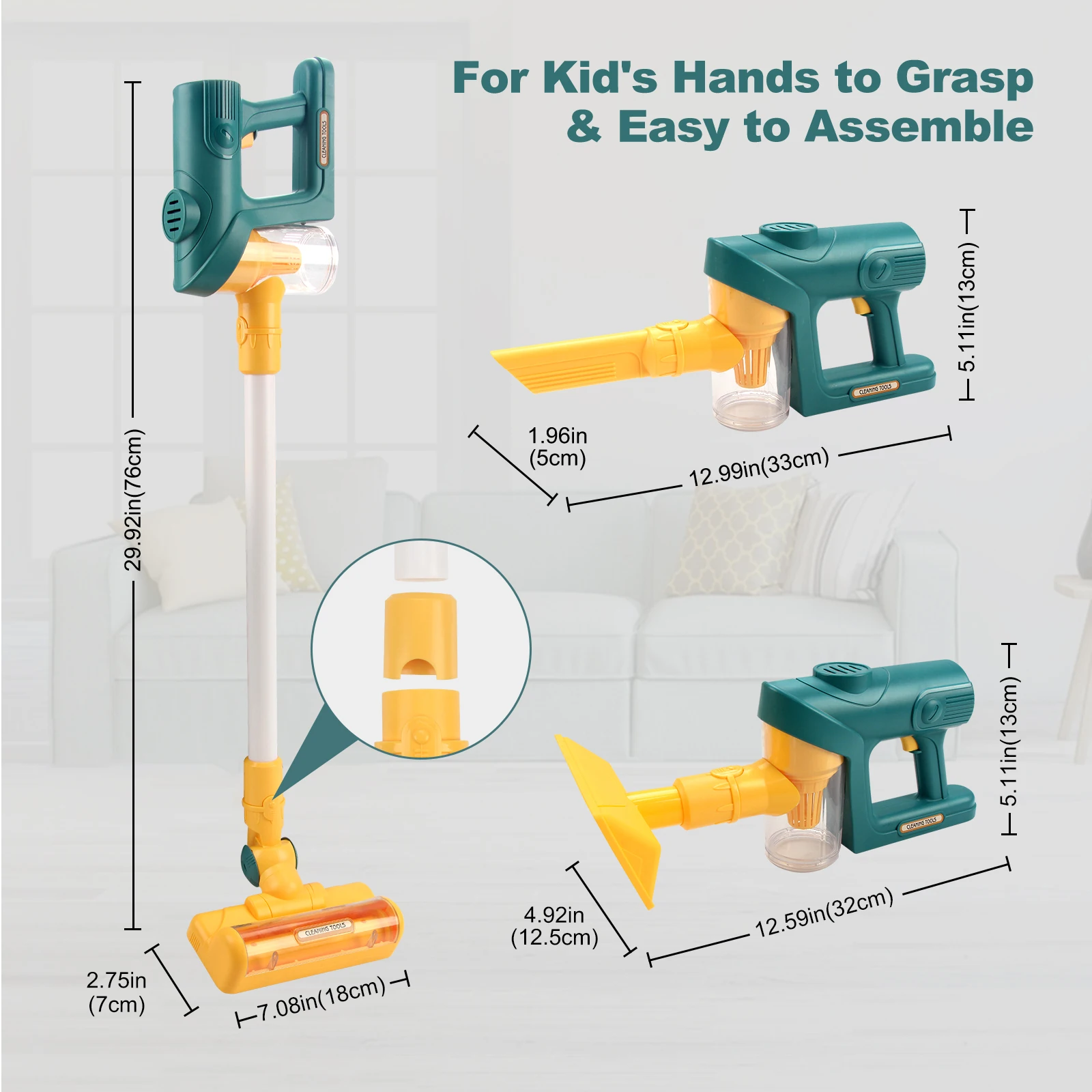 שואב האבק הצעצוע מסייע לילדים לפתח את כישורי הניקיון והיכולות המוטוריות שלהם תוך כדי משחק מהנה. הילדים יוכלו לחקות את הוריהם במשחקי בית מדומים ולרכוש מודעות לחשיבות תחזוקת הבית כבר מגיל צעיר. זמין במגוון צבעים מרהיבים ומהווה מתנה אידיאלית שתעודד משחקים אינטראקטיביים ומשפחתיים עם חברים והורים.