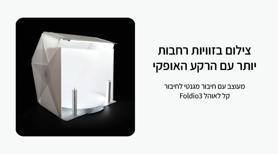 - מתאימה לשימוש באוהל Foldio3 בלבד