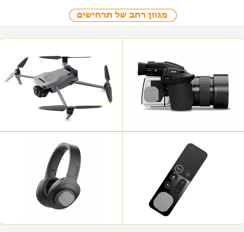 - שימושים מגוונים: מתאים להצמדה למצלמות, רחפנים, אוזניות, שלטים ועוד.