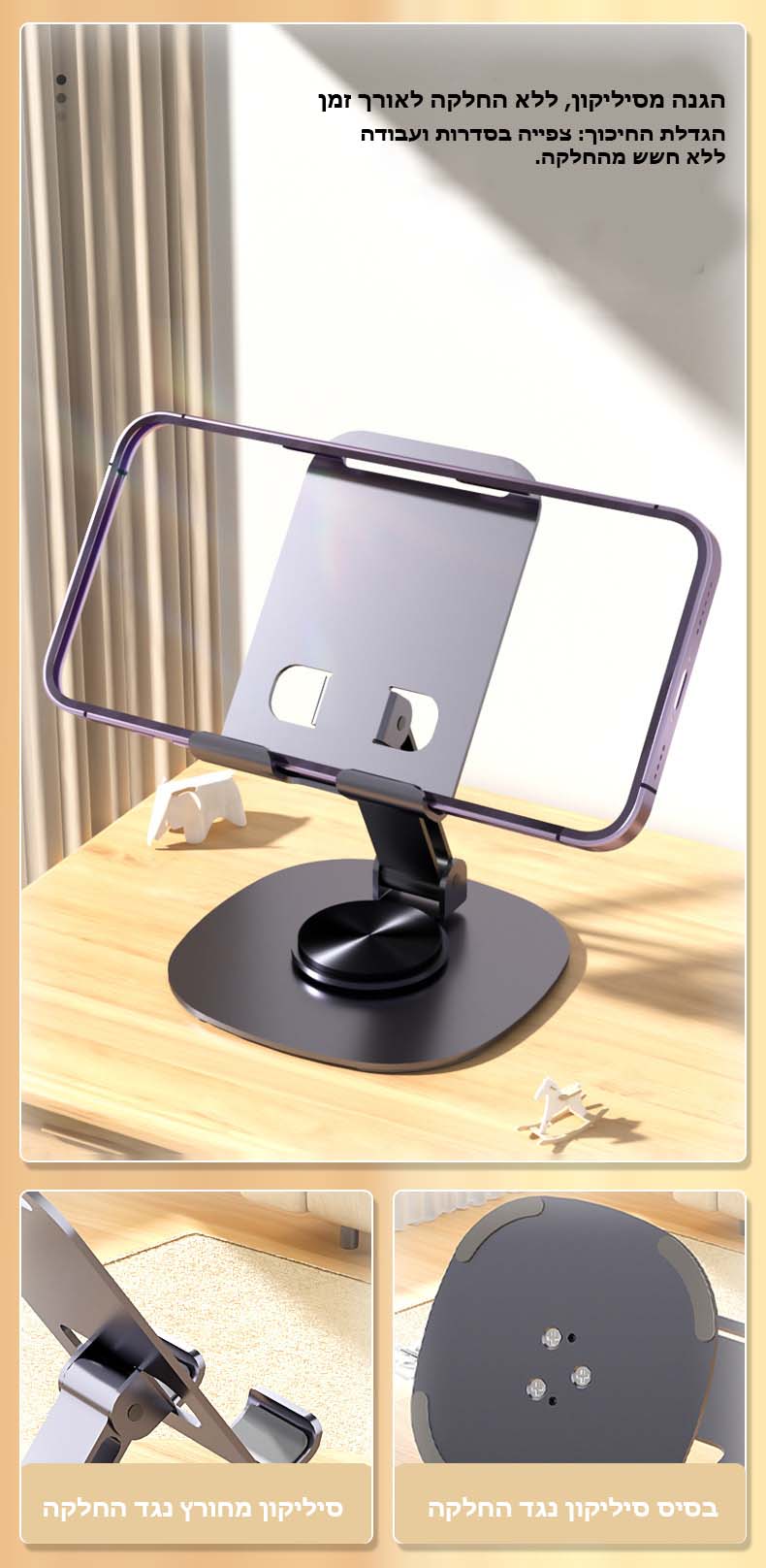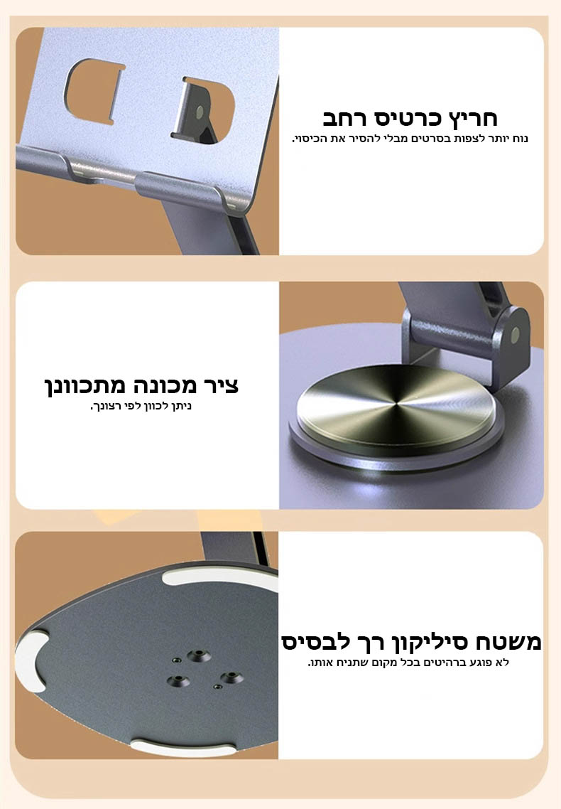 - בסיס סיליקון מונע החלקה: עם ריפוד סיליקון מיוחד ליציבות ולהגנה על המכשיר מהחלקה.