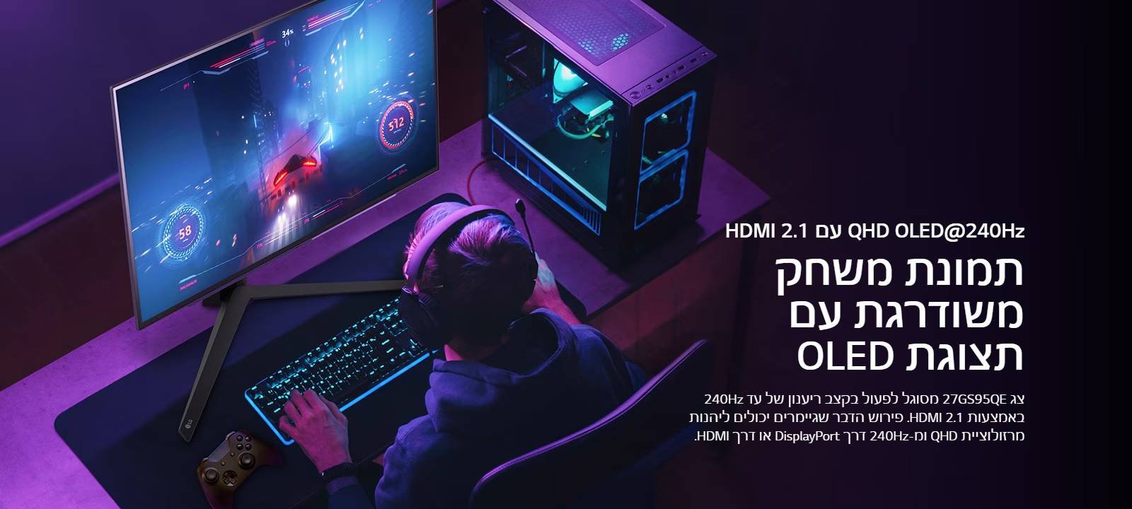 מסך מחשב גיימינג LG 26.5" QHD Oled 27GS95QE-B HDR UltraGear