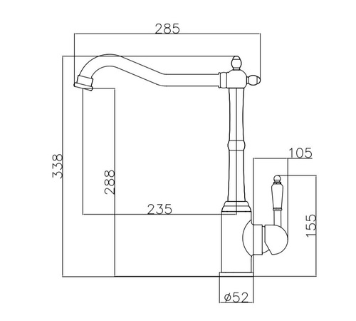 ברז פרח נמוך פיה מסתובבת ידית חרס לבנה ניקל מוברש 3614CB סיוון אופיר