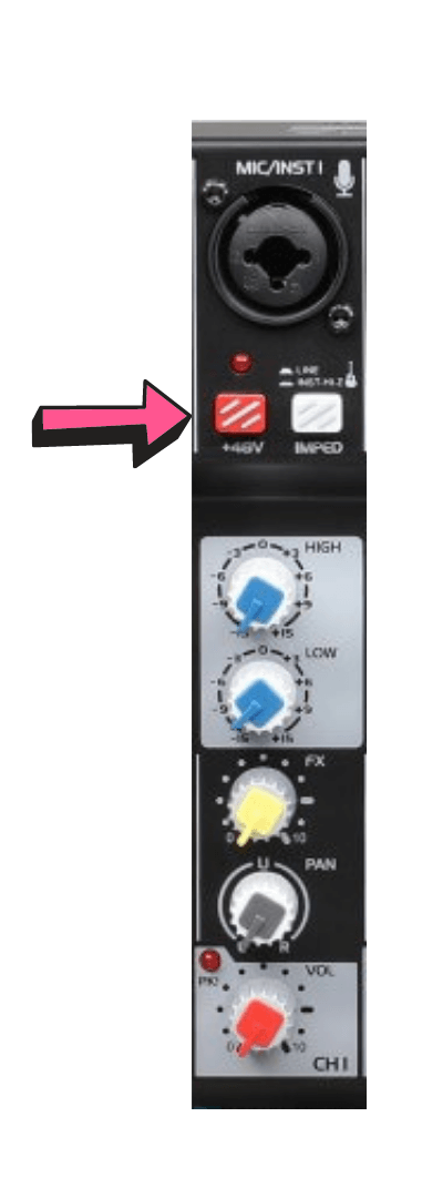 במקרים רבים, ניתן יהיה למצוא כפתור להפעלת 48V שיהיה שימושי לצורך הזרמת מתח למיקרופונים מסוג קונדנסר.