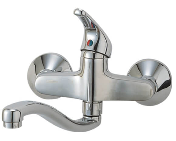 ברז מהקיר סוללה לכיור מטבח | פיה תחתונה ארוכה | כרום ניקל | 69034 | סדרת ענבר | מדגל MADGAL