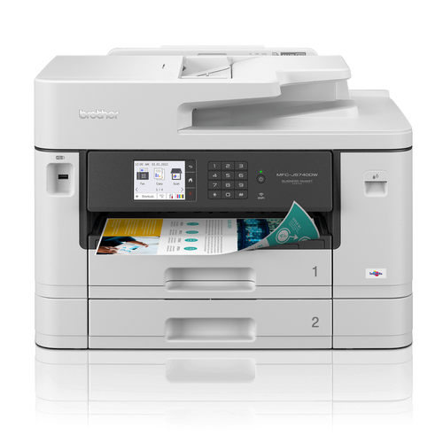 מדפסת A3 שני מגשי נייר BROTHER MFC-J5740DW מדפסת משולבת ברדר עד A3, מסוג 4 ב 1 : הדפסה העתקה סריקה פקס צילום וסריקה דו צדדית עד A4 הדפסה רגילה ודו צדדית עד A3. מהירוות הדפסה של עד 28 עמודים לדקה בשחור וצבע*. קישוריות חוטית ואלחוטית | תאימות מלאה לטלפון נייד