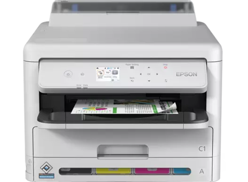 מדפסת צבע עסקית בטכנולוגיית הדפסה זולה וירוקה לסביבה. מדפסת צבעונית לקבוצות עבודה קטנות עד בינוניות, מסדרת המדפסות WORKFORCE PRO של EPSON. מהירות הדפסה עד 34 דפים בדקה בשחור ובצבע, כוללת הדפסה-סריקה- צילום דו-צדדיים. מגירת נייר ל-250 דפים. צג מגע צבעוני