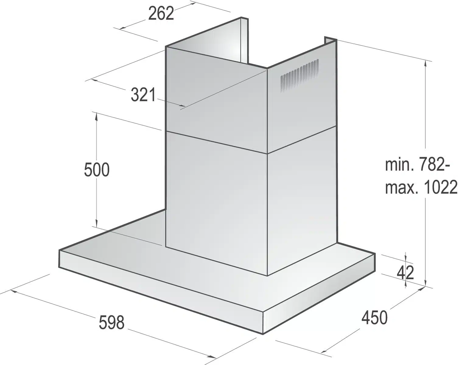 קולט אדים מלבני צמוד קיר נירוסטה