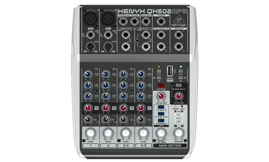 QX602MP3 של ברינגר הוא מיקסר אנלוגי קומפקטי מהסדרה האיכותית של החברה המיועד לאולפני פרוייקטים, חדרי חזרות, פודקאסטים, ארועים קטנים ועוד.