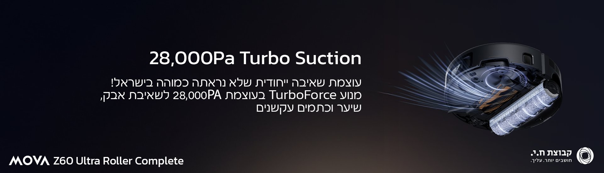 מנוע TurboForce 9 העוצמתי מבית MOVA שואב בעוצמה של Pa28,000 גם את האבק, השיער והלכלוך הכי עקשנים.
