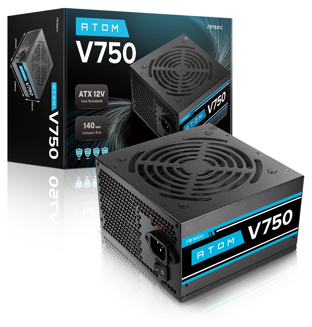 ספק הכוח Antec Atom V2 V750 מספק הספק יציב של 750W עם מאוורר שקט 120mm, מערכת Thermal Manager מתקדמת לניהול חום ורעש, וטכנולוגיית CircuitShield™ להגנות מושלמות. עיצוב לא מודולרי מהימן עם אחריות שנתיים מלאה.