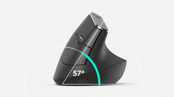 עכבר אלחוטי ארגונומי בעל עיצוב אנכי הנועד להפחית את העייפות והלחץ על כף היד